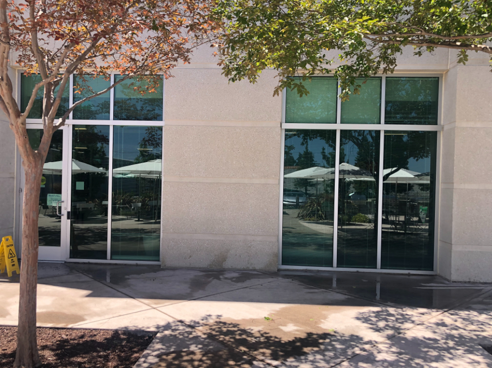 Building washing with favorable site conditions. Clear surface of dirt, dust and loose debris. Apply cleaner pre treatment to help loosen dirt. Power wash surface. Power rinse surface. Window cleaning - Remove dirt, dust and debris from exterior window, frame, track and surrounding trim. Wash, lightly with water fed pole so glass drip-free and streak-free finish.